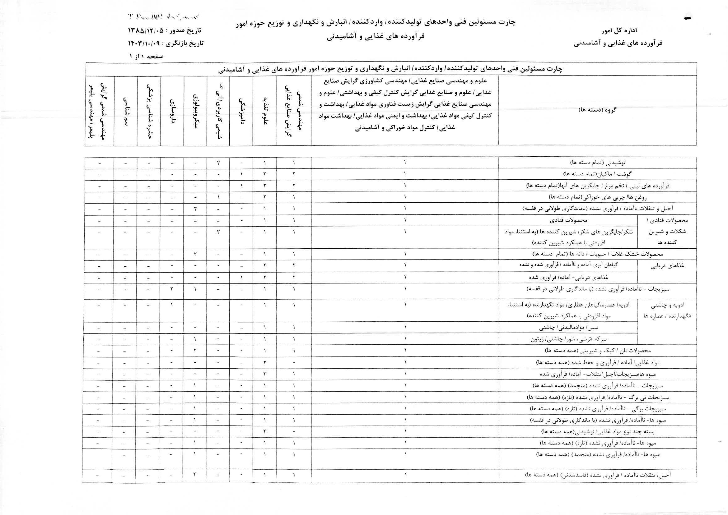 چارت مسئولین فنی کارخانجات مشمول قوانین مواد خوراکی ،آشامیدنی،آرایشی و بهداشتی1